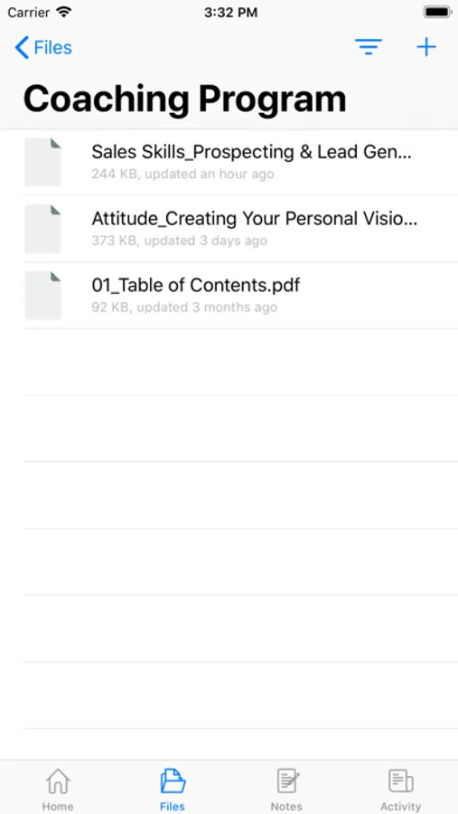 • View, download, search, organize, manage and upload files to your private coaching page in the cloud. You can upload either an existing file from your phone or by taking a new picture using your device camera to upload it and share instantly.