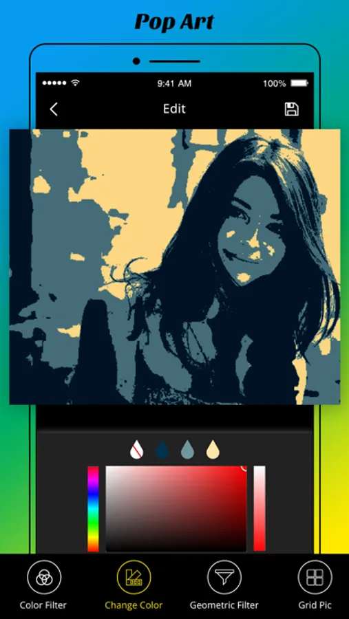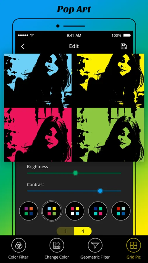 In this Pop Art Photo Editor Application, You can change the filter, Change color, Apply Different & Colorful Geometric Filters & You also Create Grid Pic using Different Grids Effects.