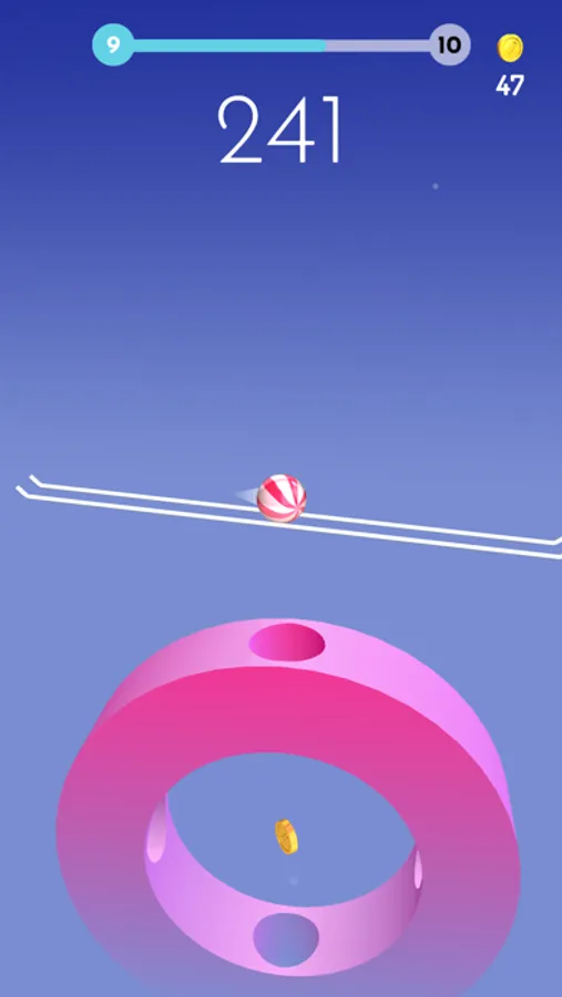 Watch your timing and tap at the correct point, to go through the hole and fall right on the next platform. Choose through which hole to go, but be careful not to fall down.