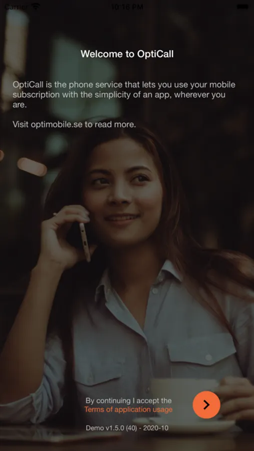 The OptiMobile OptiCall application is a demonstration application used for test by the customers of OptiMobile. This application is not available for end-users but only for operators and carriers. If you are interested in getting access to and test the service, please contact OptiMobile at info@optimobile.se or visit optimobile.se.