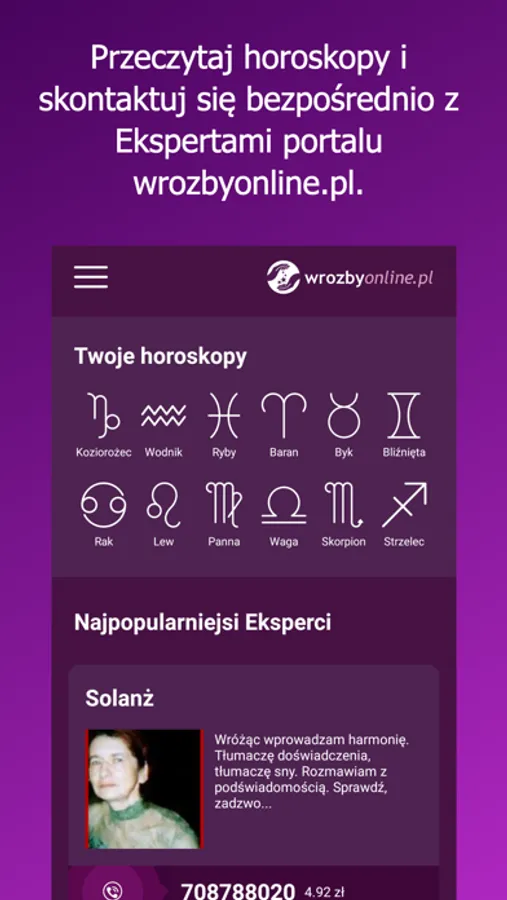 Wrozbyonline.pl - bezpośredni kontakt na żywo z Wróżką. Nasi Eksperci posiadają wieloletnie doświadczenie i wykazują się daleko idącym profesjonalizmem oraz indywidualnym podejściem do każdego problemu.