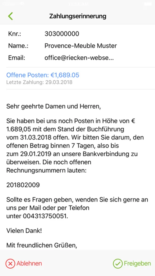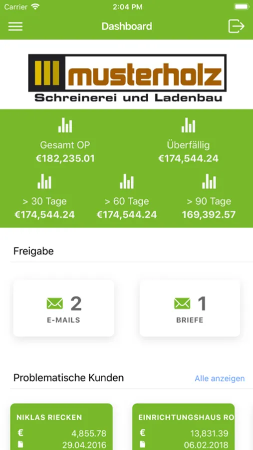 Neu: Sehen Sie Ihre OPOS Statistiken direkt in der App. Suchen Sie nach Kunden und verschaffen Sie sich einen schnellen Überblick über Ihre Außenstände. Mit der Debitorcloud App ist es möglich, Mahnungen, die in Ihrer Debitorcloud generiert wurden, von unterwegs aus schnell und komfortabel freizugeben.