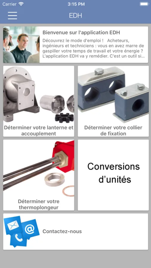L’application recense actuellement 3 produits phare et un outil de conversion d’unités. Elle sera alimentée au fur et à mesure. Nous vous invitons à nous contacter pour nous suggérer des idées de produits à implémenter.