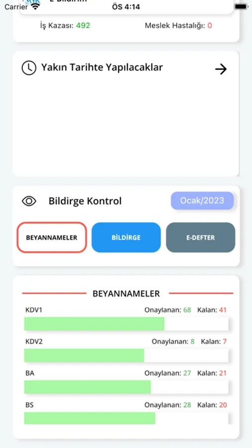 Firmalarınıza ait verilmesi gereken beyannameler verilmiş mi? Verilmemiş mi? Bunu sizin takip etmeniz yerine Hattat Müşavir Takip ediyor. Verilmediyse size uyarı ışıklarını yakıyor.