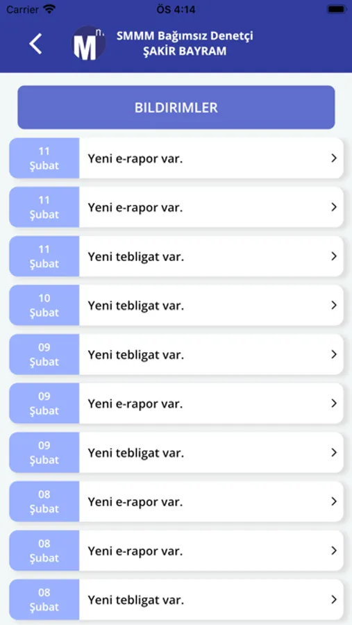 Müşterilerinize gelen E-tebligatları sizin takip etmeniz yerine Hattat Müşavir takip ediyor. Nasıl mı? Müşterilerinize gelen e- tebligatlar otomatik olarak sürekli sorgulama yapılıp masaüstü ekranınıza ve mobil uygulama aracığı ile telefonunuza uyarı bildirimi vermektedir. Böylece müşterilerinize gelen E-tebligattan anlık haberiniz oluyor.