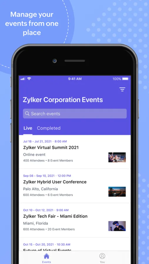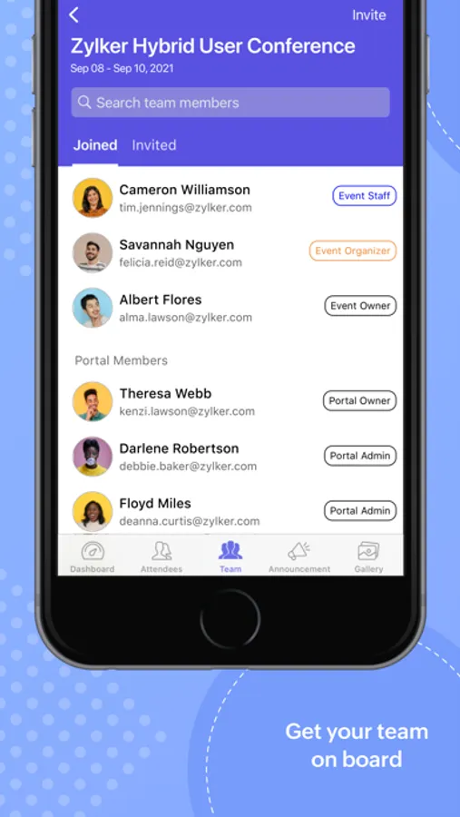 The Zoho Backstage for Organizers mobile app is designed to help you host great events from the convenience of your mobile devices. On the go or at your desk, keep a constant finger on the pulse of your event.