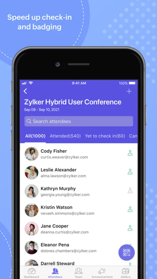 Don't keep your attendees waiting long at the registration line. Scan tickets, print badges on demand, and check in your attendees as quickly as possible.