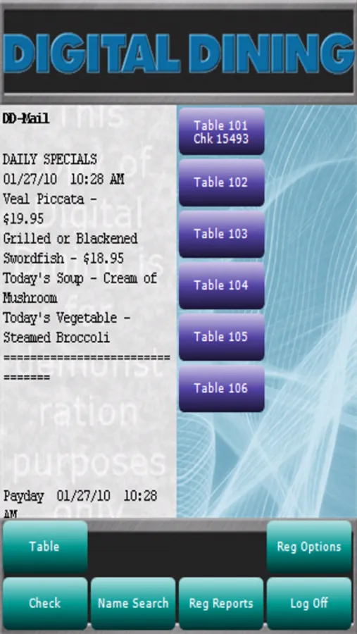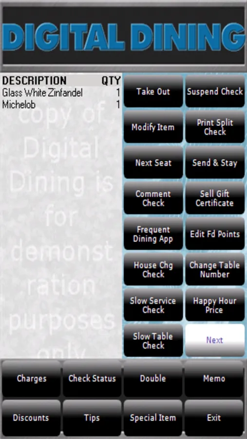 This App is for use exclusively with the Digital Dining POS System - This App requires PCI secure WIFI network and Digital Dining POS available license - This App requires activation from your local authorized Digital Dining Dealer.