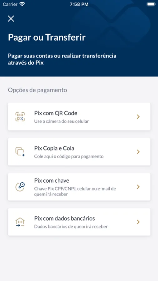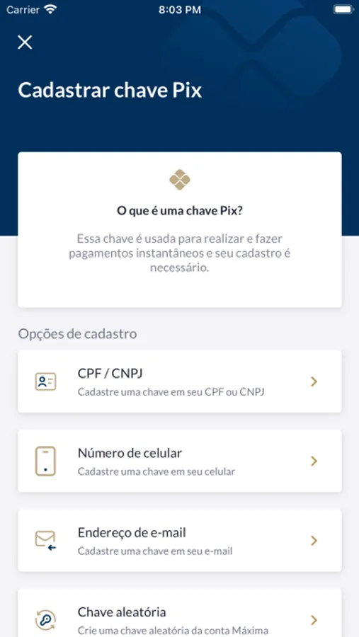 Aproveite para cadastrar sua chave Pix no Banco Master para receber e efetuar pagamentos, de forma instantânea, sempre que precisar.