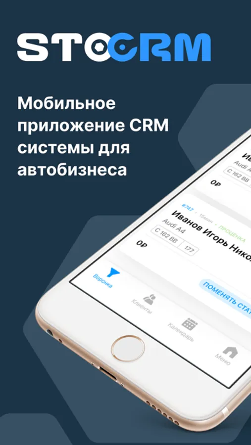 STOСRM – учетная программа для автосервиса и магазина запчастей. В мобильном приложении мы реализовали основные функции программы STOCRM, которые помогут проще и быстрее записывать клиента на автосервис и работать рядом с транспортным средством без персонального компьютера.