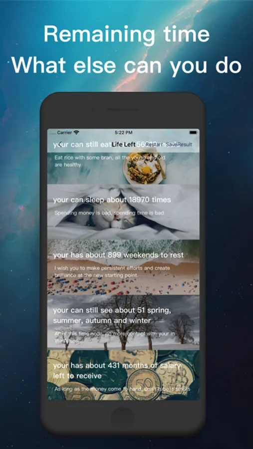 【Life Left】 Calculate how long the current user has survived in the world and how much time is left based on the entered birthday. The warning statement on the card on the homepage reminds you to always cherish time;