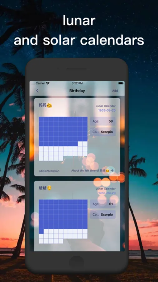 【Birthday】 Accurately calculate the user's zodiac and constellation. For users who are added to the birthday list, the system will send a reminder on the user's birthday to remind you not to miss TA's birthday;
