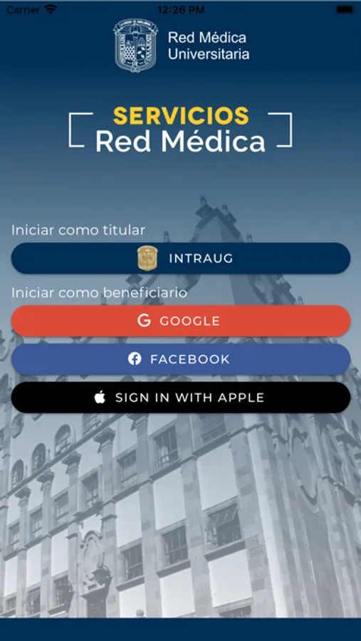 App planeada para uso de proveedores externos (Hospitales, farmacias, laboratorios, gabinetes, etc.) que brindan servicio a los derechohabientes de la red médica universitaria de la universidad de Guanajuato, con el objetivo de que puedan validar la identidad de las personas (Titulares o beneficiarios de la red médica) que acuden con ellos y verificar si cuentan con servicio de red médica o no, sin tener que portar una credencial