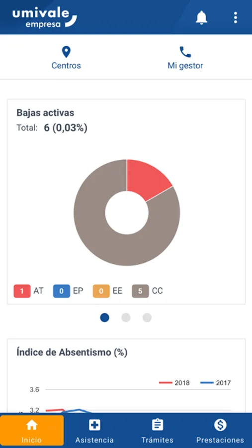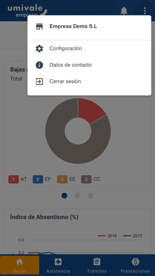 Pantalla de inicio más visual que permite acceder rápidamente a la información más importante, como cuántos están de baja hoy o qué trámites tienes pendientes de realizar.
