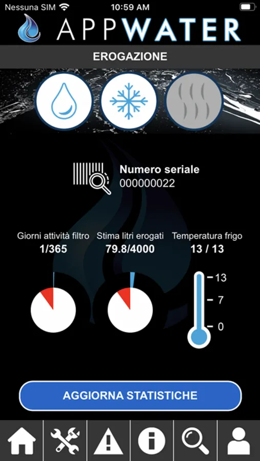 La App permette di collegarsi ad un Water Dispenser via bluetooth.
