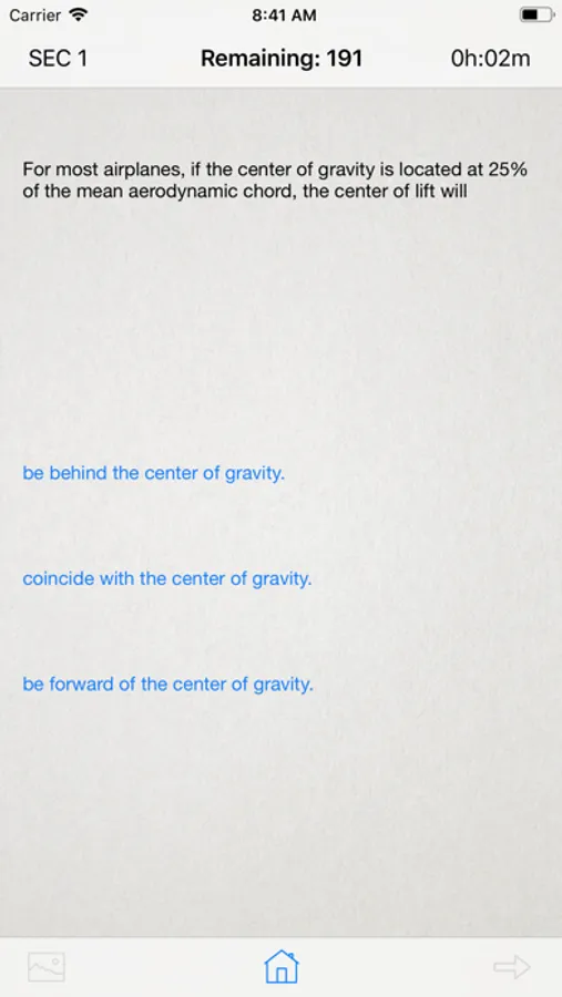 Test Mode - Simulates the test you are going to take at a FAA Knowledge Test Center. In this mode, you are asked 50 questions that are pulled from the question bank.