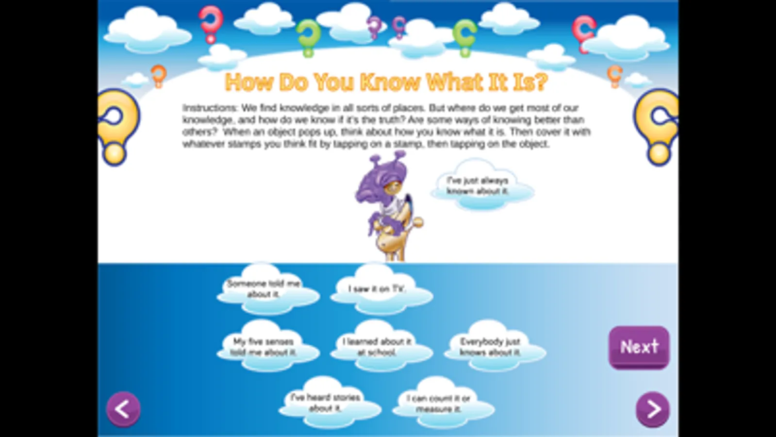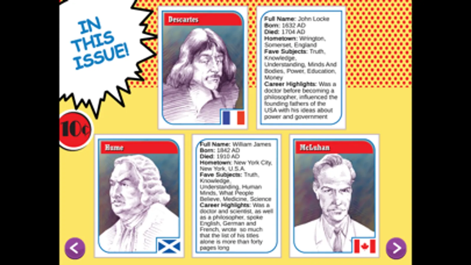 Join our charming and intrepid narrator, Sophia the Wise, as she thinks her way through some of the biggest (and coolest) questions human beings have ever asked. Meet famous philosophers, and try amazing ideas out for yourself with interactive activities.