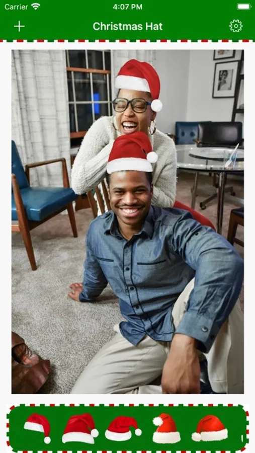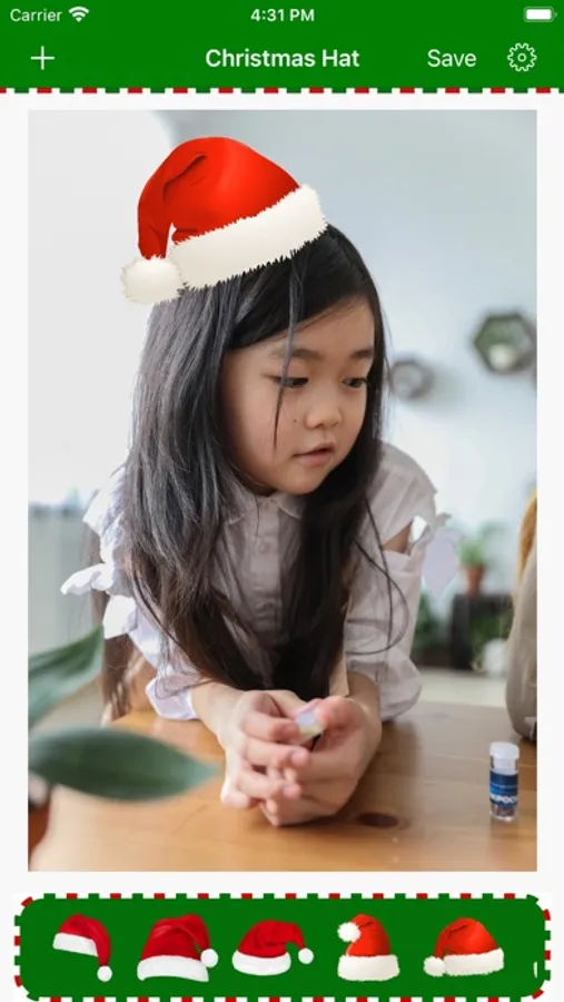 Import photos or take photos, select your favorite Christmas hat, then adjust the appropriate position and rotation, click Save to album or share to friends. Is it easy? Download it now. It will bring a lot of fun to your Christmas!