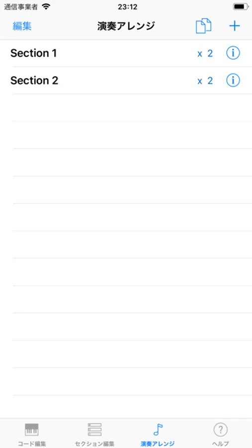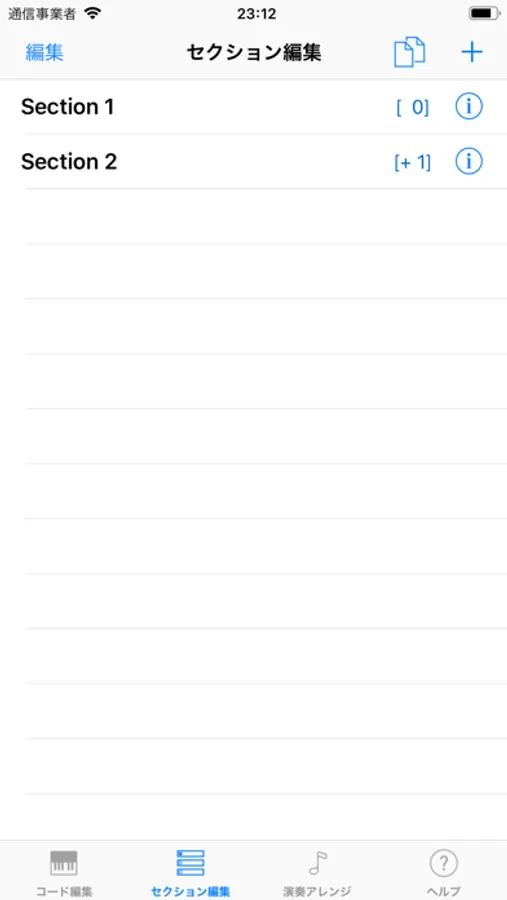 イントロ、Aメロ、Bメロ、サビなどの単位でセクションを作ることができます。