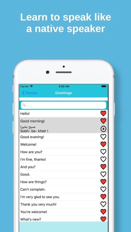 Learn Persian Farsi is a simple app for anyone who wishes to learn Persian fast and easy. It is perfect for beginners and advanced users. Recommended for those who wish to travel to Iran.