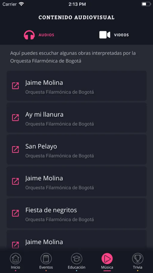 El diseño, desarrollo e implementación de la aplicación Orquesta Filarmónica de Bogotá, fue realizado por la Universidad Nacional de Colombia a través del ViveLab Bogotá en convenio con la Alta Consejería Distrital de TIC."