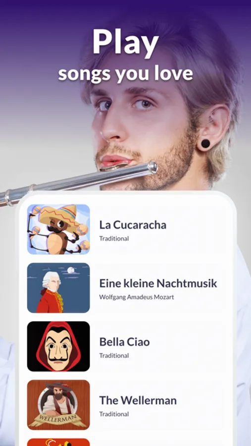 Weekly challenges with hand-picked songs give you the extra motivation to improve your skills when you compare yourself with flute players from around the world.
