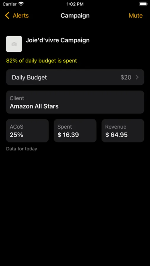 Then you can, directly inside the app, or even from the notification, increase the budget (if it's a profitable campaign), or decrease it,