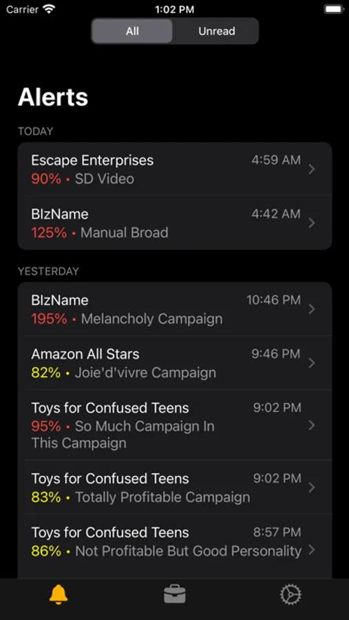 If any of your campaigns go over 90%, you'll receive a notification with the name of the campaign, the ACoS, the spend.