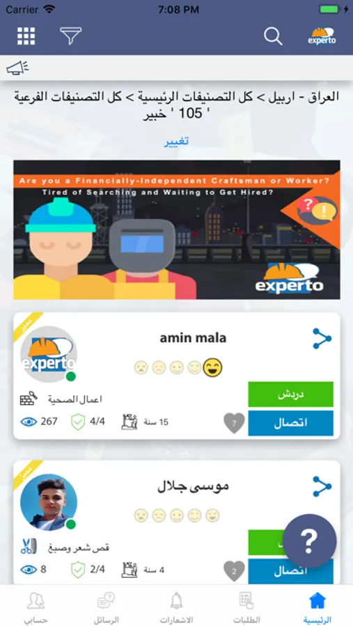 يهدف هذا المشروع الى مساعدة الحرفيين والعمال الصناعيين المستقلين من خلال ربطهم بعملائهم بشكل مباشر و هذا سيمكن العمال من: