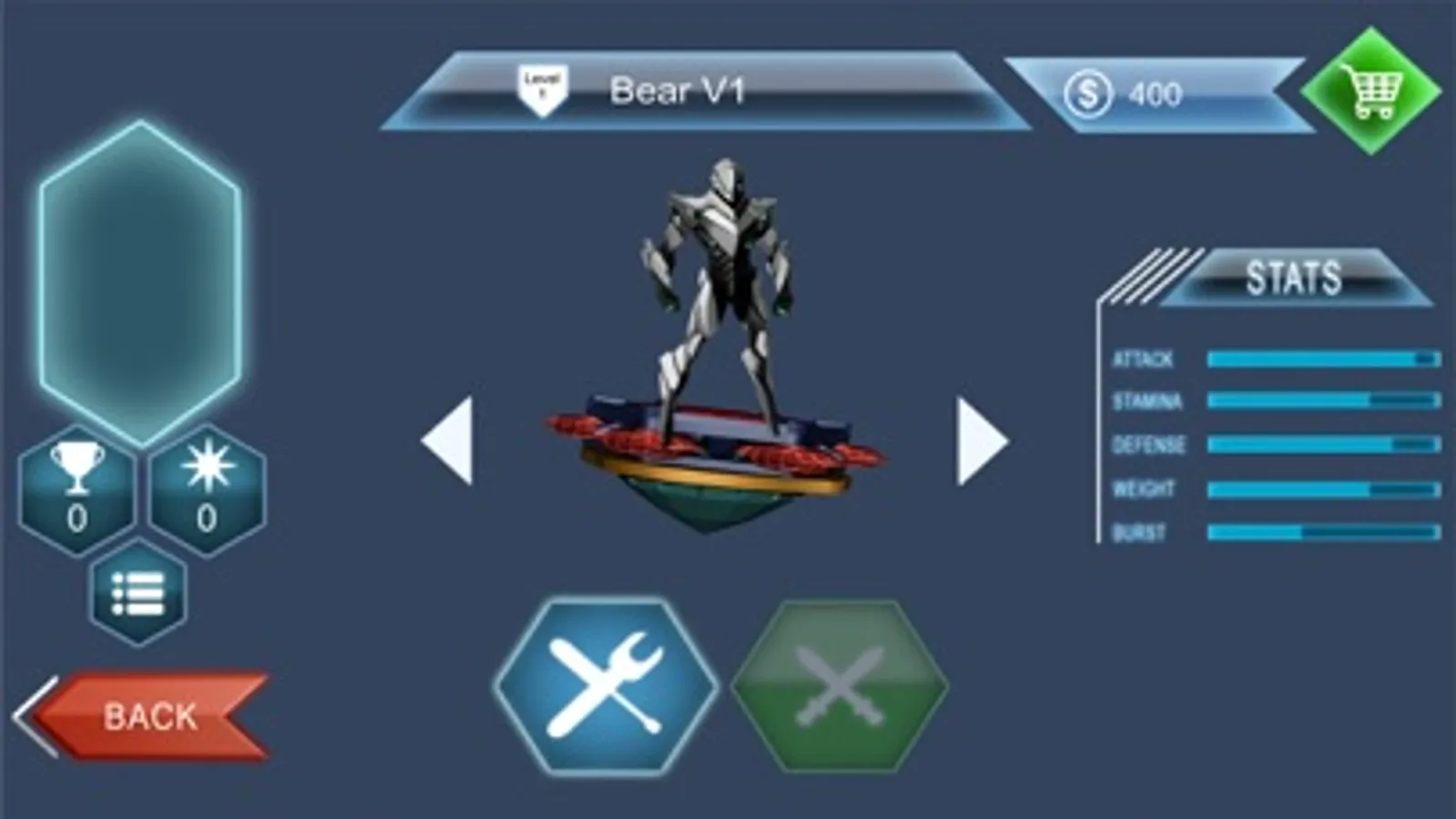 In all modes, the fight ends in 100 seconds. Your score get higher or lower depending on your attacks and speed. If you hit your opponent , the score increases , if you get attacked , it becomes low. Try to earn points by using the attacking power. You can stop and replay the game at any time, also enable or disable music and sound. All options are offered in Spin Blade, to make you comfortable and satisfied while playing.
