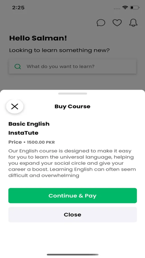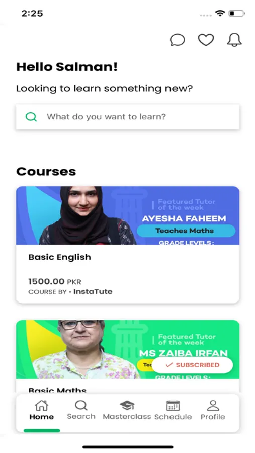 Learners can get in touch with their instructors before booking their session and interact with them via in app messaging and ask them any subject related questions.