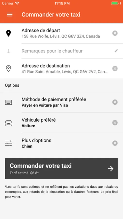 Vous désirez payer par carte de crédit ou débit? Vous voyager avec un chien? Vous avez besoin d’une Van?