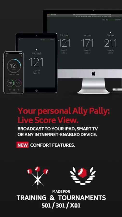 Only with Voiceboard you get the unique ring design: Full focus on your darts. No frills, no keyboard covering half the screen. Only a voice-controlled dart scoreboard can be this clear!