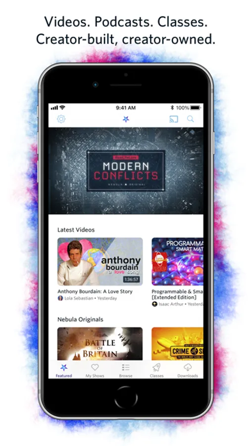 Nebula is an independent streaming service built by Creators. It features thoughtful videos, podcasts, and classes tailored for our audience — ad free. When using the Nebula app, you’ll enjoy access to: