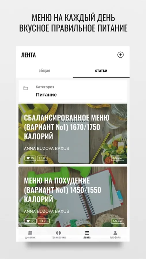 Наше мобильное приложение позволит вам тренироваться самостоятельно по нашей программе в любое удобно для Вас время! В приложении будут доступны разделы тренировок ( тренировки для любых целей ), питание (рационы для любых целей, рецепты и база продуктов с КБЖУ).