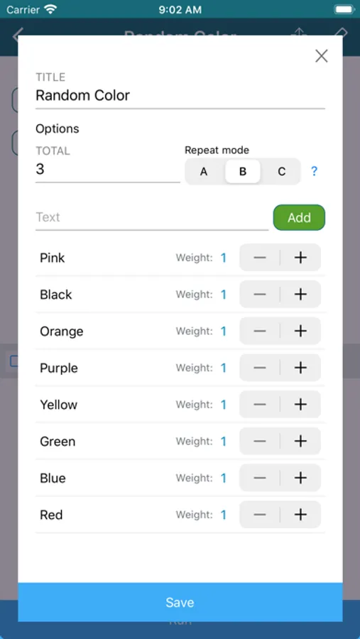 Now we have added the random text function. With the random text function, you can easily extract various types of text at random. For example, you can add text of various colors to the selected text, set the number of extractions each time, turn on the "Unique" switch, and after saving, you can click the "Run" button to randomly extract different colors. Other usages are similar, you can add a number, person name, dish name, place name, mode of transportation, name of the purchased item, etc. It also supports reading out the extracted text, supports multiple languages, and you can input words to randomly extract dictation words. You can enter your name for random roll call. The text to be selected supports setting of weights. The greater the weight, the higher the probability of being drawn. You can set the weight to make a random function more suitable for your needs.