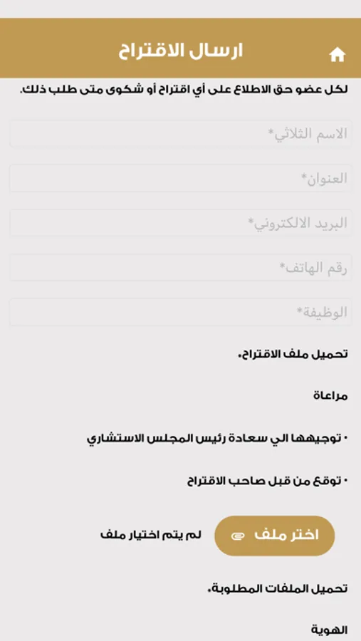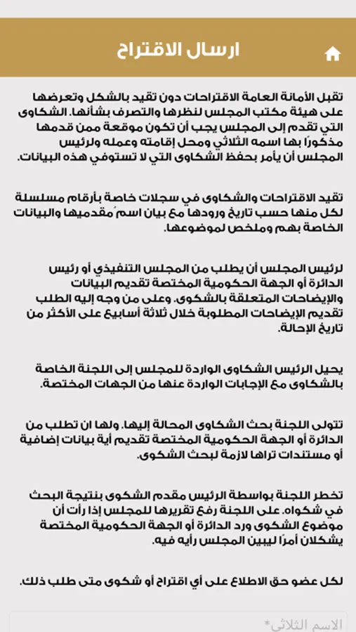 بوابة الجمهور لتقديم "اقتراحاتهم وشكواهم" إلى المجلس وفقاً لشروط وأحكام معينة
