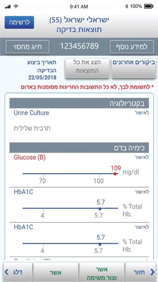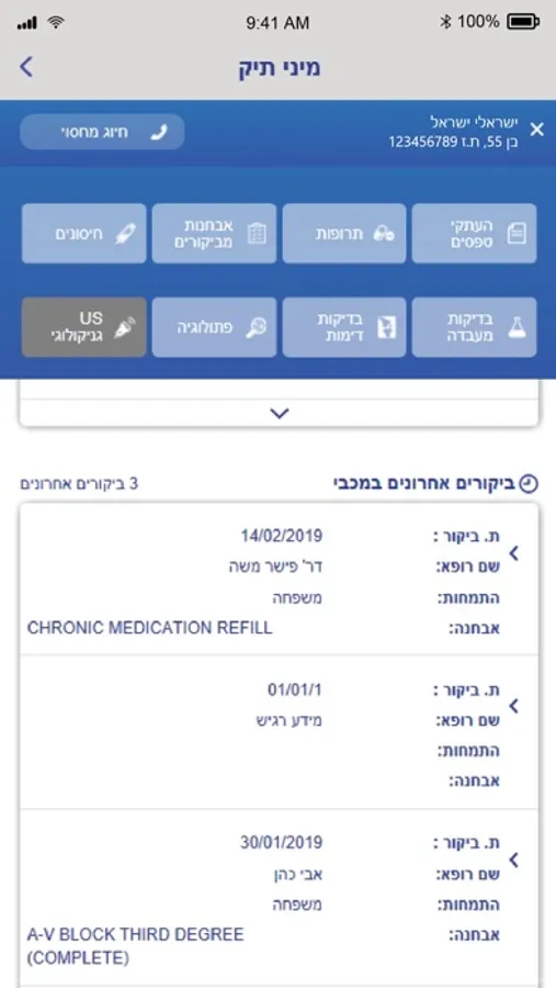 האפליקציה מאפשרת לצפות במידע רפואי (אבחנות, חיסונים, תוצאות בדיקות, רשימת ביקורים קודמים, אישור תשובות מעבדות, דימות ופתולוגיה ועוד)