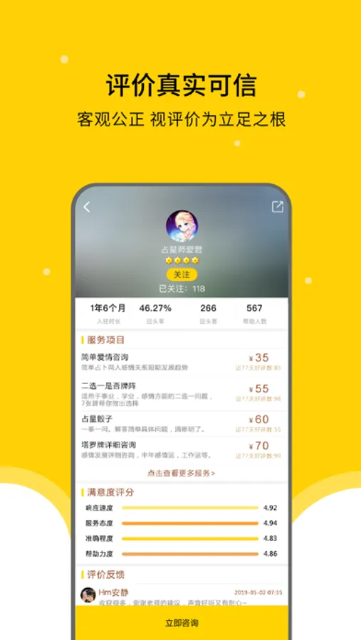 泛滥的机械解析替代不了人文关怀,千篇一律的AI报告不具有人的温度。有星光的指引,有真实的体验,有真人一对一的零距离贴心沟通,有着37℃的平台,才能真正涤除烦恼和忧愁。在这里让星光拨开重重迷雾,有什么苦恼倾诉出来,我们一起解决,帮你离幸福越来越近。