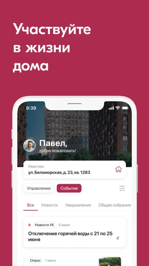 информирование о плановых работах, отключении ГВС и других важных новостях вашего дома