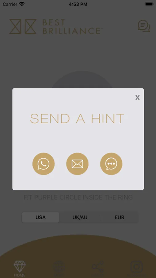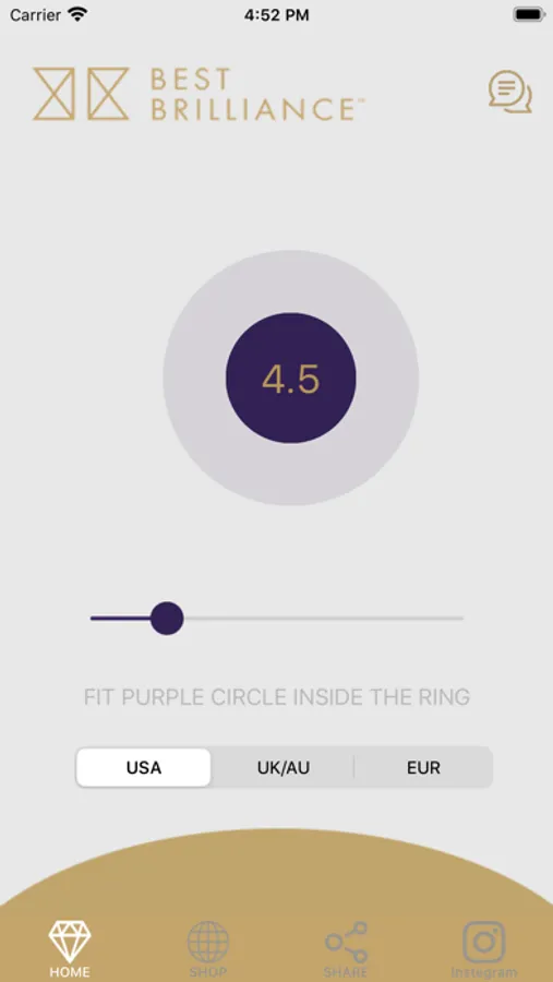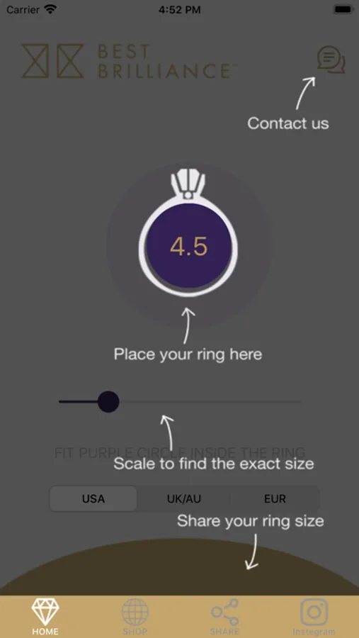 The free downloadable Ring Sizer app is both accurate and simple to use—you can’t go wrong.It’s as simple as this. You can find out what ring size you need in measurements for the UK, EU, or the USA. All sizes can then be determined accurately and easily.Place the person’s existing ring on your smart phone screen that has had the Ring Sizer app downloaded. Now, adjust the circle until it’s an exact fit of the inside of the ring. This handy Ring Sizer allows you to keep your ring gift a secret—whether it’s the engagement ring or any other special ring as a gift. You keep the surprise a secret—without making an unnecessary trip to the jeweler.Maybe you’re not sure how to download the free Ring Sizer app. No problem. All you have to do is fill in the simple form with your details below, and register for our e-newsletter too. Then we’ll send you a link to download the Ring Sizer app.