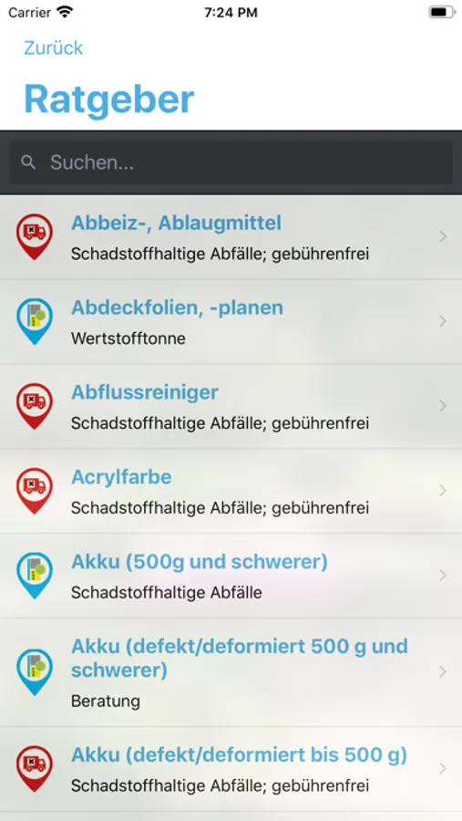 • ein Abfall-ABC oder Ratgeber hilft bei der Entsorgung ganz bestimmter Wertstoffe. Zudem wird auf die richtigen Entsorgungsstandorte verwiesen.
