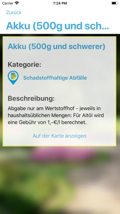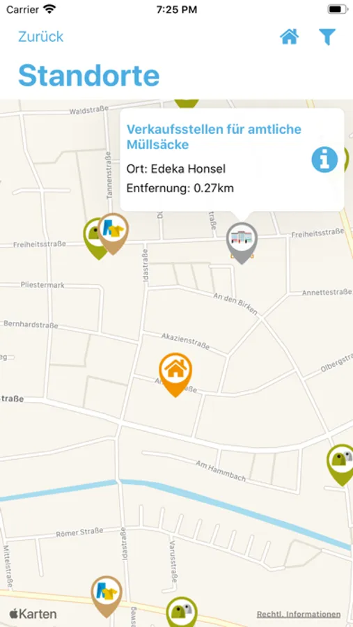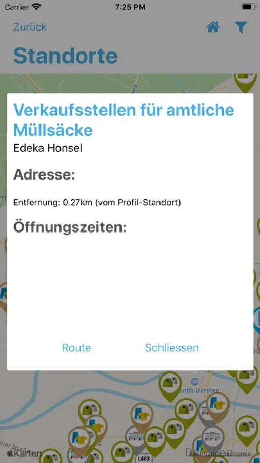 • eine Übersicht aller Entsorgungsstandorte mit Öffnungszeiten und einer Routingfunktion
