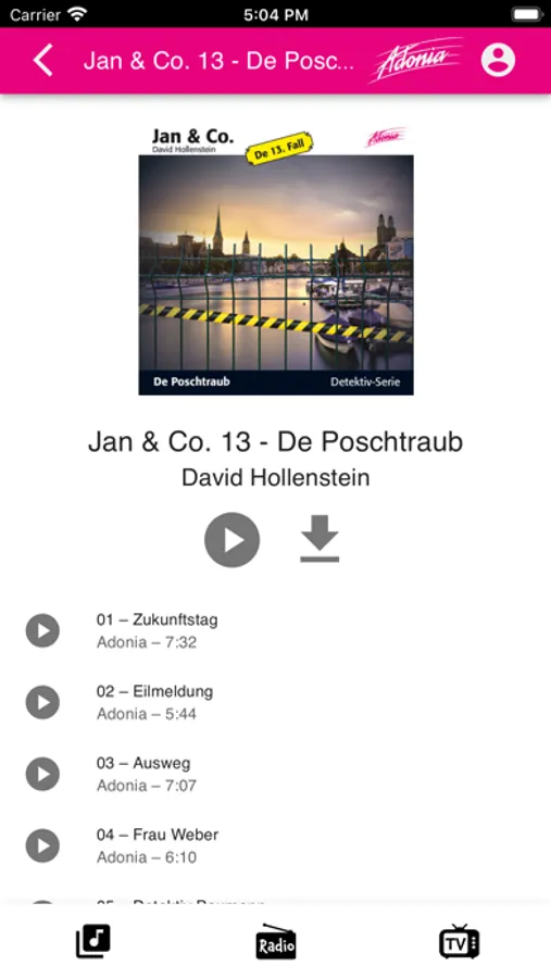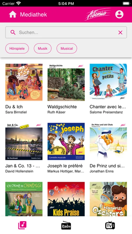 Hören Sie sich die Musik, Musicals und Hörspiele von Adonia an. Es ist möglich die Produkte zu streamen, sie stehen nach dem Herunterladen zum Beispiel für unterwegs auch offline zur Verfügung. Von allen Produkten können Sie Hörbeispiele anhören. Ein ganzes Hörspiel schenken wir Ihnen nach dem Erstellen eines Kundenkontos. Mit dieser App kann die ganze Familie im gleichen Haushalt auf ihren Geräten bequem auf die Adonia-Produkte zugreifen. Ihr Kundenkonto ist plattformübergreifend gültig, so können Sie die Produkte im App und im Browser anhören, aber auch im Online Shop herunterladen.