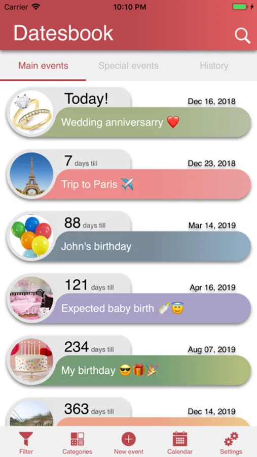 Life is too short not to celebrate nice moments! Datesbook is the 1st app to tell you about special events in your life!