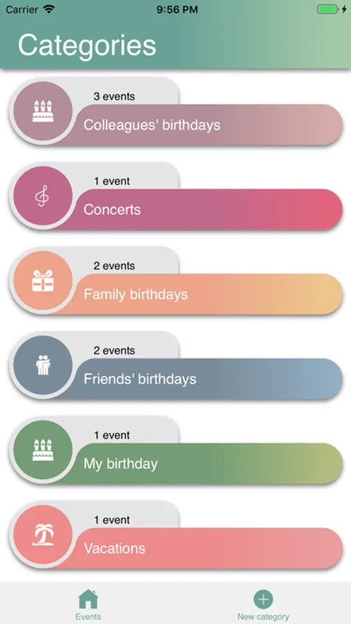 # Never miss any important event in your life! Notifications the same day or 7 days before any event will remind you about it. Select it's time in a day yourself.