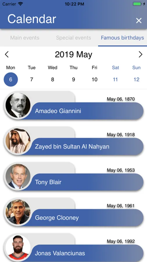 # You will be able to check what famous people are celebrating their birthdays on any date during the year. More than 1000 current and historical celebrities added;