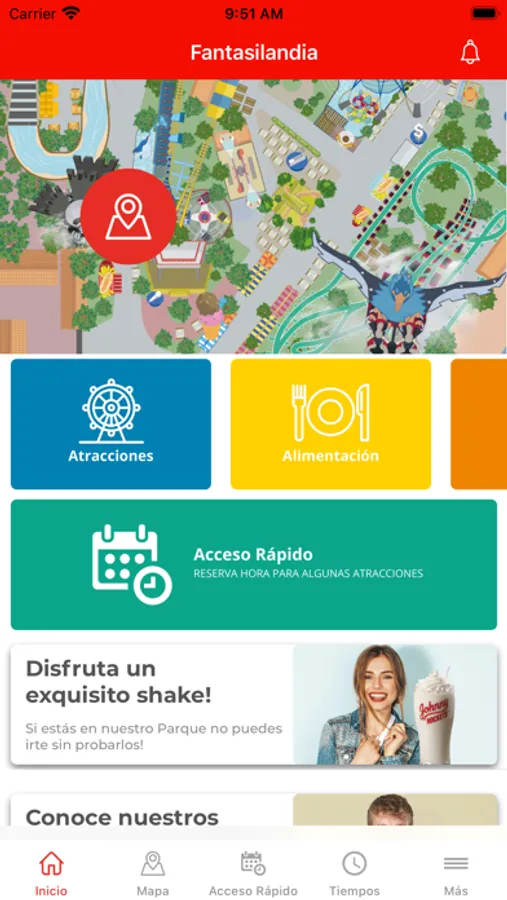 La App Fantasilandia es una herramienta para moverte dentro del parque. Te da la opción de ver el mapa completo y así podrás encontrar todas las atracciones que buscas, los distintos tipos de restaurantes, ubicación de baños e informaciones.