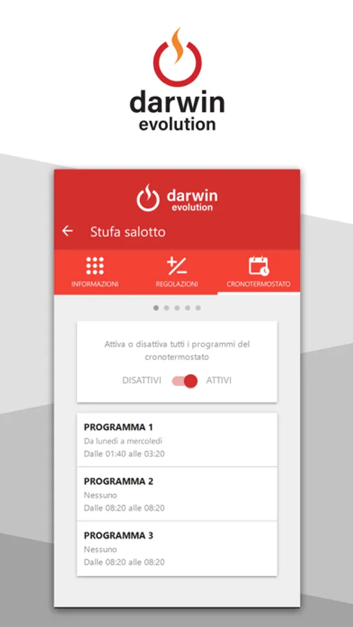 “DARWIN 2.0” è la nuova APP di COLA S.r.l. che ti permetterà di controllare direttamente la tua stufa, termostufa o caldaia a pellet Anselmo Cola. Tutte le funzioni dell’apparecchio saranno disponibili su smartphone e tablet ovunque tu sia. Sarà possibile: