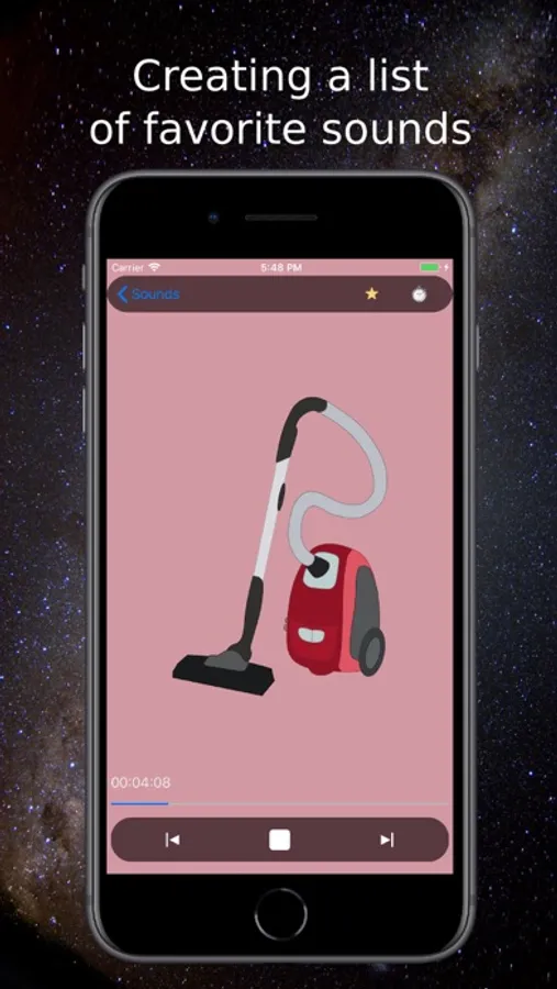 The intuitive interface and aesthetic appearance of the application make you happy to use it. You can create a list of your favorite sounds and adjust the playing time of the recording (up to 24 hours).